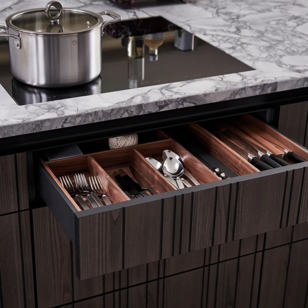 Exceptional kitchen demands exceptional technology. We assist in selecting and integrating finest built-in appliance brands, ensuring technical and aesthetic compatibility with pure lines of your kitchen without disrupting seamless design.